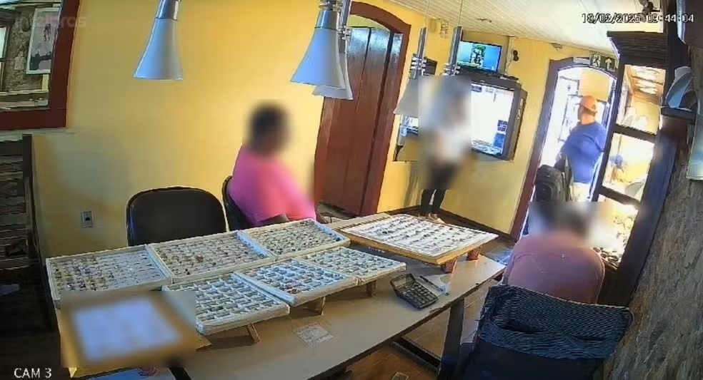 O crime, que durou quatro minutos, foi o primeiro assalto ao estabelecimento em 40 anos. As imagens de câmeras de seguranças mostram dois homens armados renderam funcionários enquanto um terceiro vigiava a porta. Em seguida, os ladrões fugiram levando peças de ouro e pedras como topázio imperial e água-marinha.