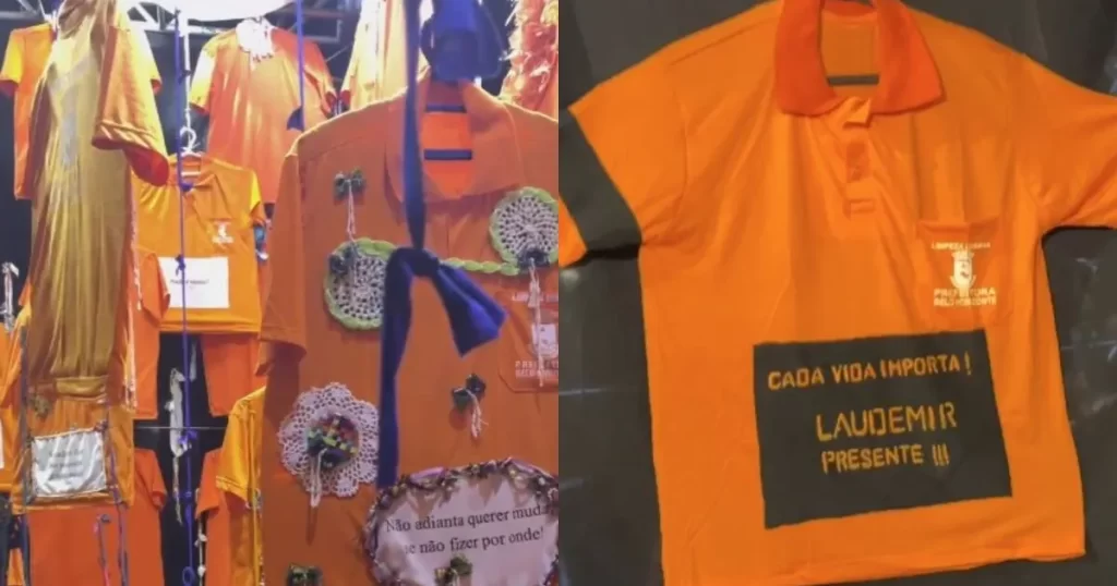 Intitulada ‘Vestindo a camisa da limpeza’, a instalação artística busca dar visibilidade a um trabalho que é essencial para a preservação da cidade. A artista visual Elania Matos, responsável pela preparação do espaço, explicou que a ideia ganhou um novo significado após a morte de Laudemir.