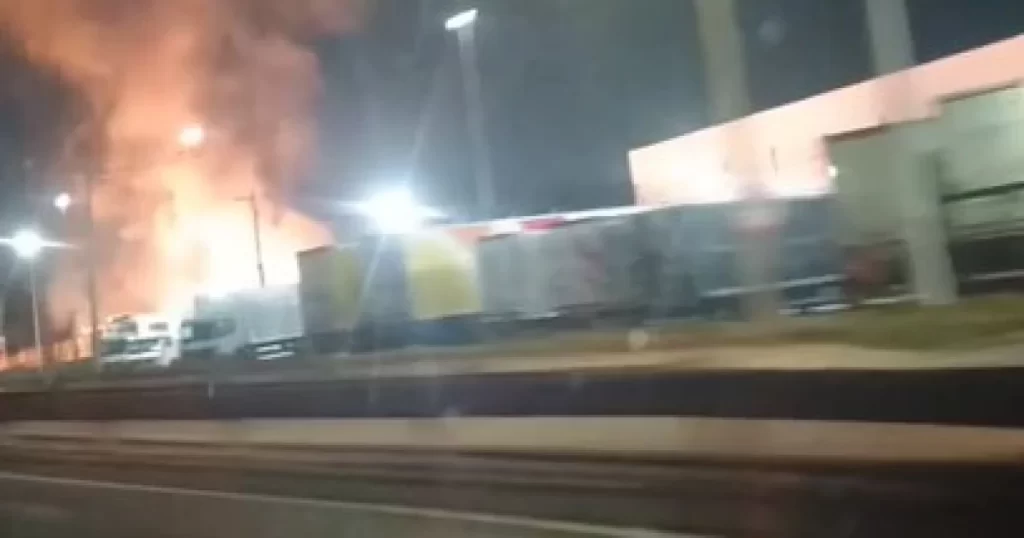 Fogo começou no pátio de uma empresa no bairro Paulo Camilo e assustou motoristas; rodovia foi liberada no início da manhã