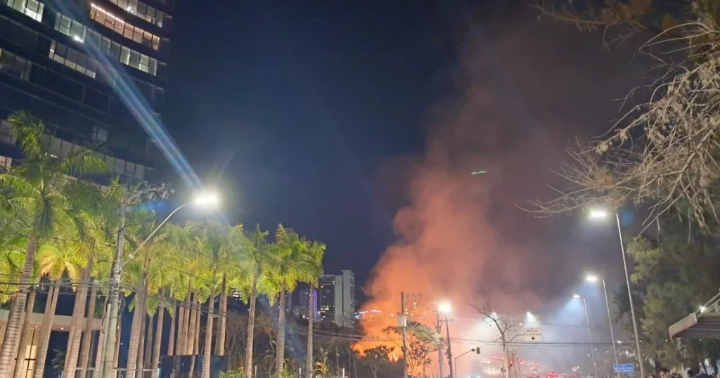 Ao Corpo de Bombeiros, o solicitante informou o risco de propagação para imóveis nas imediações