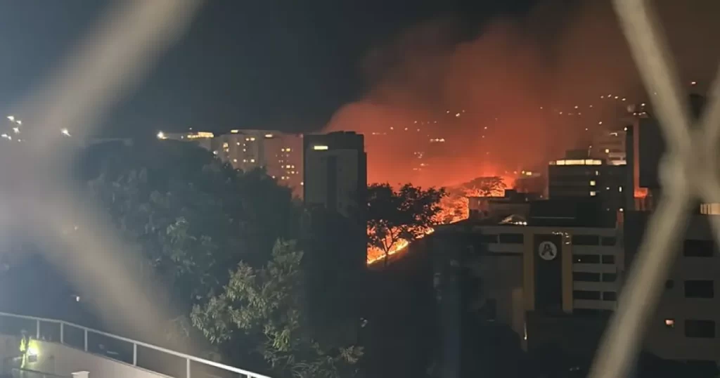 Segundo moradores, as chamas tomaram todo o lote e se aproximaram da divisa com um condomínio residencial.