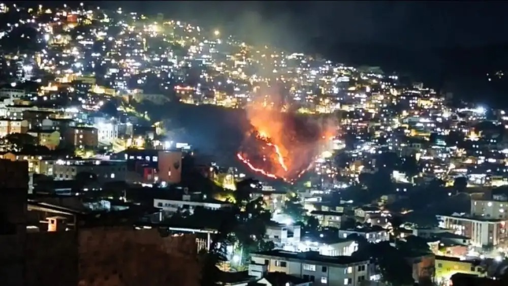 Um incêndio em uma área de vegetação na Vila Marçola, no Aglomerado da Serra, região Centro-Sul de Belo Horizonte, mobilizou o Corpo de Bombeiros na noite desta quarta-feira (30). O fogo se alastrou rapidamente por um terreno íngreme com acúmulo de lixo na rua Água e chegou a ameaçar casas próximas.