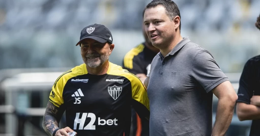 Sampaoli assinou contrato com o Galo até o fim de 2027. Essa será a segunda passagem do treinador pelo clube alvinegro.