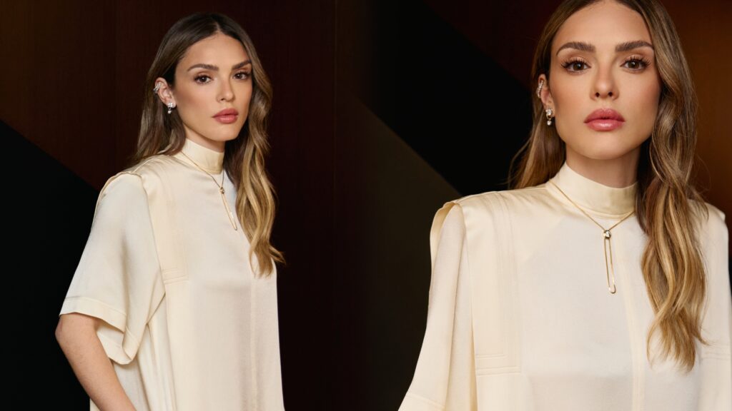 A beleza de Isabelle foi realçada pela maquiagem de Ale de Souza, que optou por um look natural e radiante. O styling ficou a cargo de Thiago Biagi, que coordenou todas as peças e acessórios em perfeita harmonia.