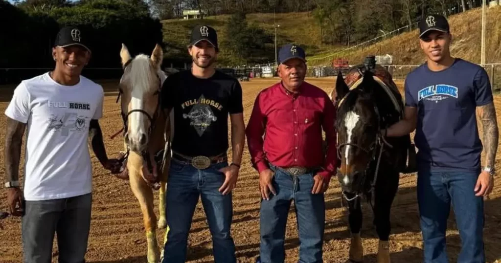 O perfil do haras de Kaio Jorge no Instagram publicou dois vídeos mostrando Lucas Silva e Marquinhos com os cavalos no interior de Minas Gerais. Em um deles, o artilheiro celeste chama o camisa 7 de “novo vaqueiro no pedaço”.