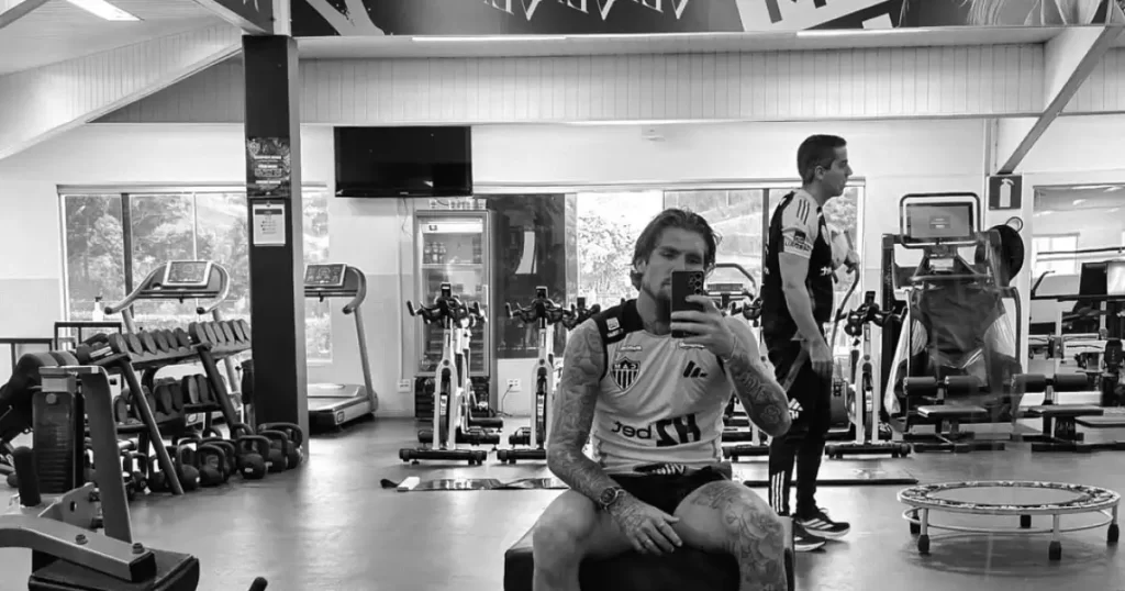 Lyanco publicou uma foto e um boomerang na academia da Cidade do Galo na manhã desta terça-feira (24). O zagueiro do