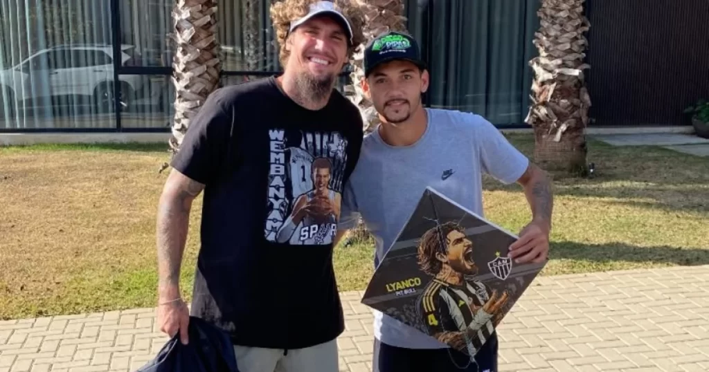 Em entrevista para a Itatiaia, Diego revela que tomou a iniciativa de oferecer o brinquedo para o jogador do Galo após ver um vídeo em que o defensor aparece como ‘pipeiro’. O registro, feito no ano passado, mostra a esposa de Lyanco no beach tennis, enquanto o zagueiro se diverte com a linha e a pipa.