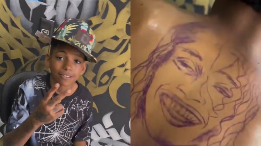 Em um vídeo publicado, o tatuador mostra a produção da tatuagem, que teve o consenso da mãe, assim como em outro vídeo postado no TikTok e no Instagram.