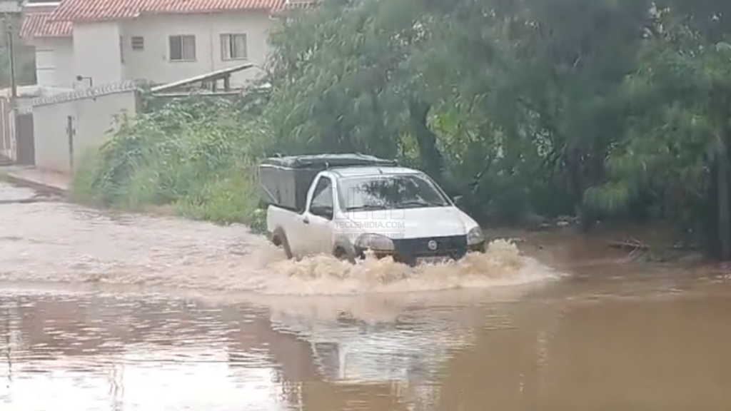 Com o volume de chuva registrado ao longo do dia, diversos pontos da cidade apresentaram alagamentos, principalmente em áreas próximas a cursos d’água e regiões mais baixas.
