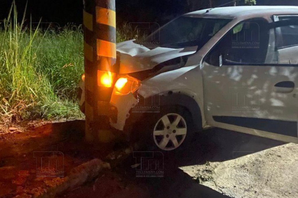 De acordo com a Polícia Militar, a condutora de um Renault Kwid branco perdeu o controle ao entrar na via, colidindo frontalmente com um poste de concreto que sustenta câmeras de videomonitoramento do município. O impacto causou danos significativos na frente do veículo e danos leves ao poste.