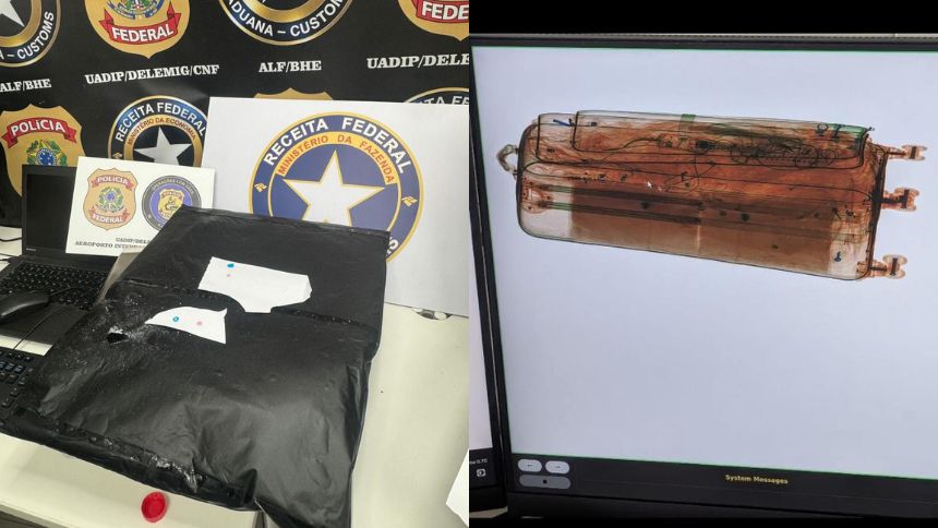 Uma passageira foi presa em flagrante no Aeroporto Internacional de Confins, na Grande BH, com 3,5 kg de cocaína escondidos em um fundo falso de uma mala. A operação conjunta entre a Polícia Federal e a Receita Federal aconteceu na tarde de quinta-feira (11).