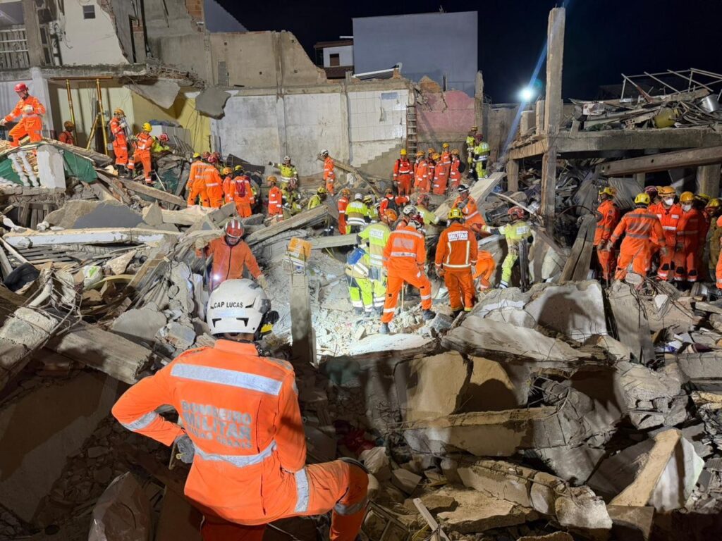 As equipes permanecem mobilizadas na área enquanto continuam as buscas e a avaliação da estrutura do imóvel. A causa do desabamento ainda deverá ser apurada pelas autoridades responsáveis.