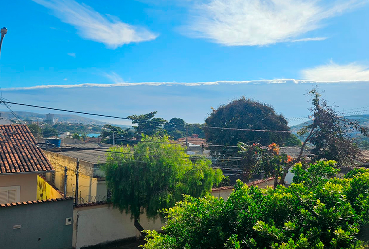 Quem observou o céu na manhã deste sábado (21) pôde apreciar uma incrível formação de nuvem do tipo Altostratus, que se apresentou como um “paredão” ou um “cobertor” sobre parte da cidade. Essa nuvem trouxe um leve frio, mas sem grande intensidade.