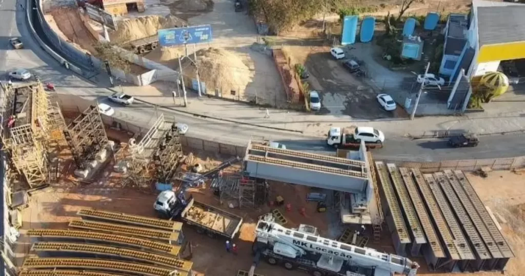 A obra é mais uma etapa do projeto de mobilidade urbana no Vetor Norte, feita pela Superintendência de Desenvolvimento da Capital (Sudecap), e inclui o içamento de vigas que farão parte da estrutura dos viadutos.