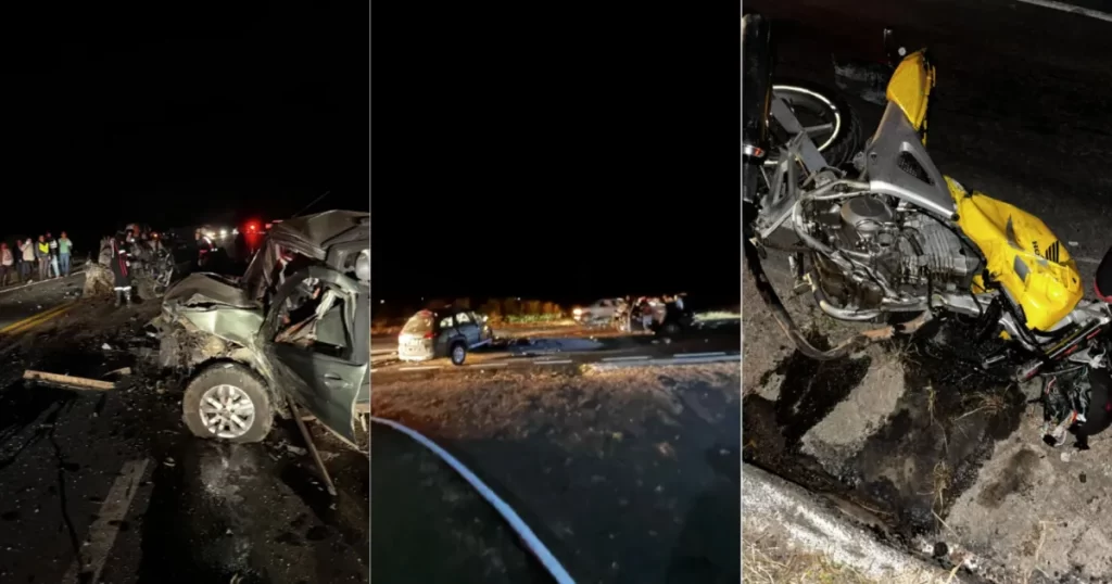 Um grave acidente envolvendo uma motocicleta, dois carros e uma van deixou oito mortos e dois feridos na noite desse domingo (3), na BR-491, em Guaxupé, no Sul de Minas. Entre as vítimas estão uma criança de 8 anos e uma adolescente de 17.