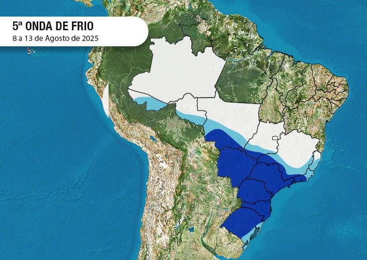 A onda de frio se estenderá até quarta-feira (13), afetando todos os estados do Sul, Sudeste e Centro-Oeste com dias consecutivos de mínimas e máximas baixas. Desta vez, o frio persistirá por mais tempo que nas ondas anteriores.