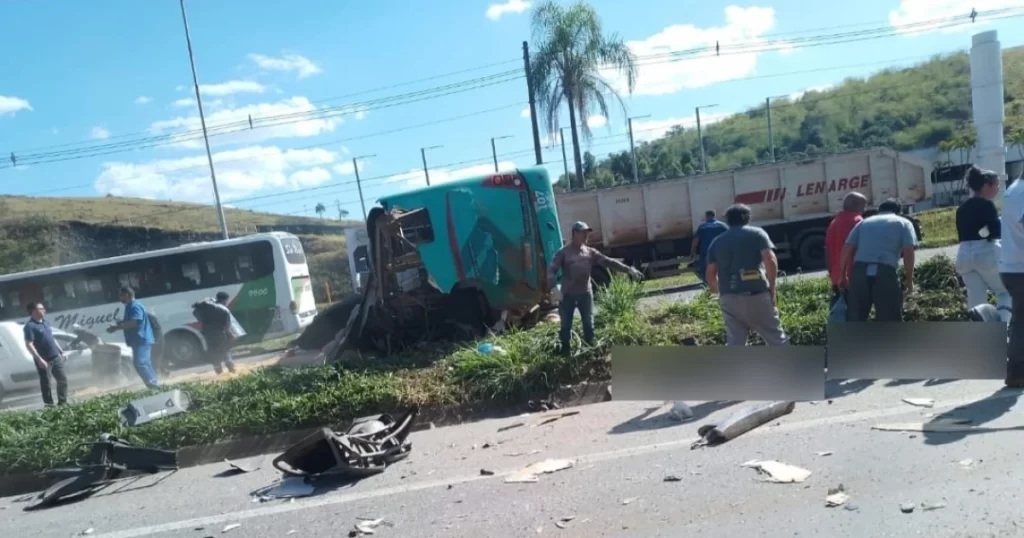 Segundo informações do Corpo de Bombeiros, o coletivo que capotou é do transporte municipal de Juiz de Fora — da linha 743 — e se envolveu em um acidente com um ônibus de turismo interestadual.