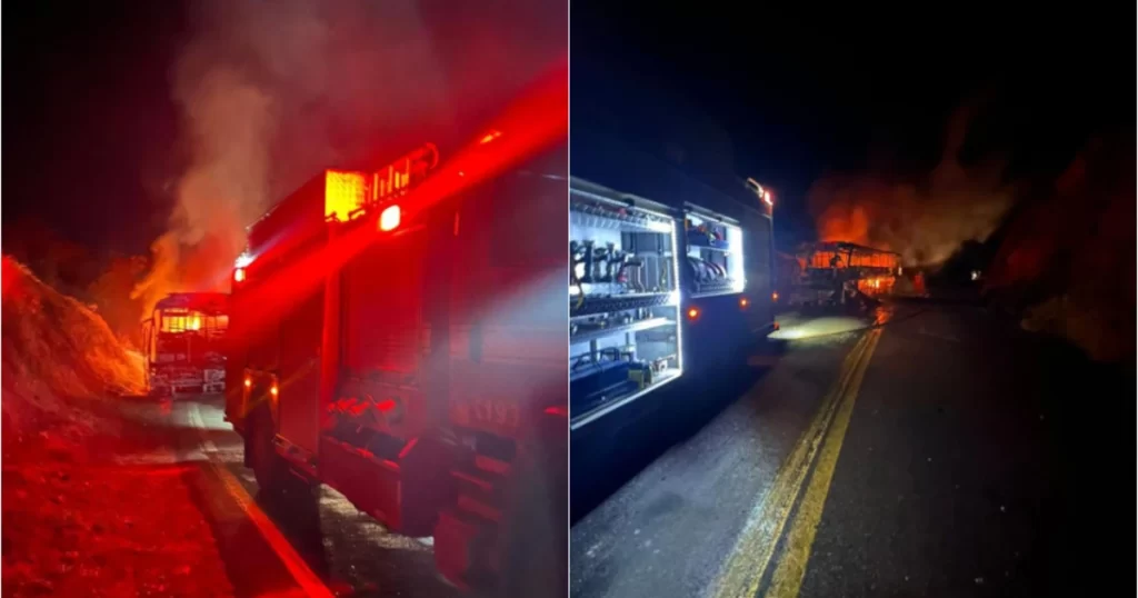 Assim que chegaram ao local, bombeiros confirmaram a situação. Lá, eles encontraram o motorista do ônibus de 49 anos que, ao identificar o incêndio, desembarcou os 28 passageiros e seus pertences com ajuda de seu auxiliar.