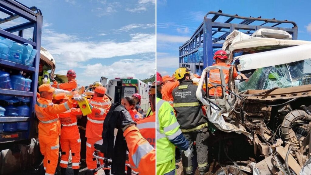 Os bombeiros desligaram as baterias dos veículos e aplicaram contenção para estancar vazamento de combustível na pista.