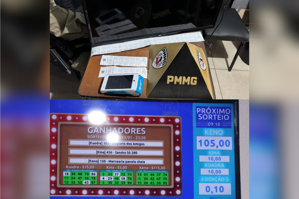 Nesta terça-feira (13), uma ação policial foi realizada em um comércio situado na Rua Raimundo Maximiliano Soares, no bairro Brasília, em Sete Lagoas, com o intuito de combater a prática de jogos de azar.