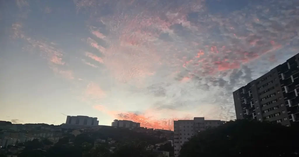 A Defesa Civil de Belo Horizonte informou que neste sábado (2) o dia deve ser de céu claro com névoa seca, à tarde. e que a temperatura mínima prevista é de 10 °C e a máxima de 26 °C.