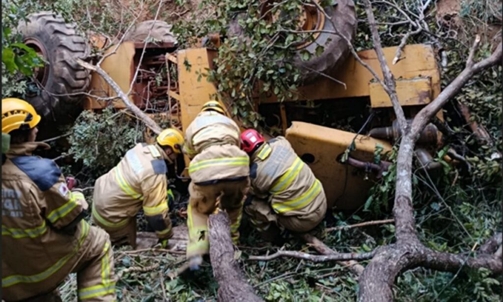 Segundo os bombeiros, a máquina tombou na margem de uma estrada rural, caiu de uma altura de aproximadamente 18 metros e parou invertida em uma área de grota. Quando as equipes chegaram ao local, a vítima já estava sem vida, presa às ferragens e sob o equipamento.