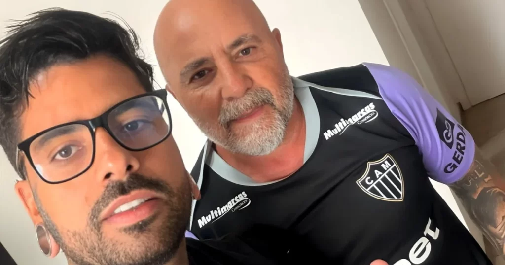 O técnico Jorge Sampaoli fez mais tatuagens com Thiago Scap, responsável pelos mosaicos da torcida do Atlético, nesta quinta-feira (29).