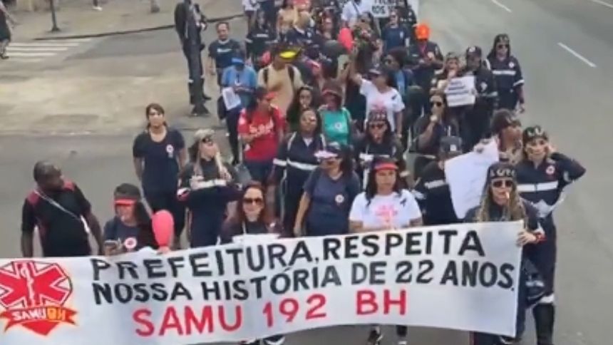 Servidores do Samu 192 de Belo Horizonte realizaram um protesto na manhã desta quarta-feira (22) em frente à prefeitura, na Avenida Afonso Pena, no Centro da capital. Eles reagem à decisão do Executivo de não renovar os contratos de cerca de 25% dos técnicos de enfermagem das Unidades de Suporte Básico (USBs), que vencem no dia 1º de maio, feriado do Dia do Trabalho.