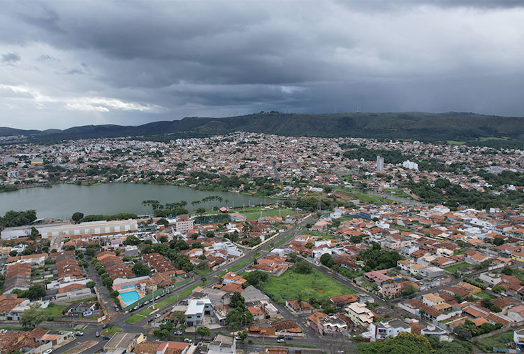 Vista aérea da cidade, com a Lagoa José Felix e Serra de Santa Helena ao fundo – Crédito: Alan Junio