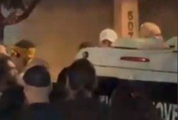 Em resposta, o humorista reagiu e realizou uma simulação de exorcismo em um dos manifestantes que estava ajoelhado, colocando a mão em sua cabeça e dizendo frases sobre a atuação do diabo enquanto outros presentes rezavam. Após esse momento, o artista entrou para realizar a primeira parte do show, mas retornou à porta do teatro pouco depois, iniciando uma nova discussão. De acordo com a Polícia Militar, ele trocou empurrões com um jovem de 24 anos que vestia uma camisa com frases católicas. Testemunhas relataram aos policiais que o humorista também dirigiu falas contra uma mulher, afirmando que ela não tinha direito de fala e que merecia ser chutada por ser cristã.