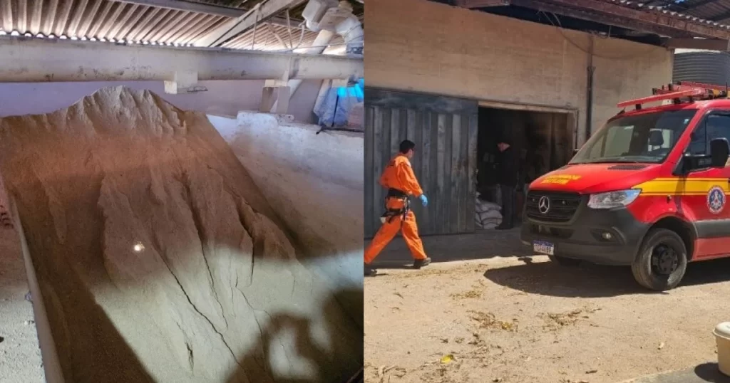 Após colegas do trabalhador realizarem uma abertura para remover parte do material, os bombeiros retiraram o corpo do silo. O óbito foi constatado no local.