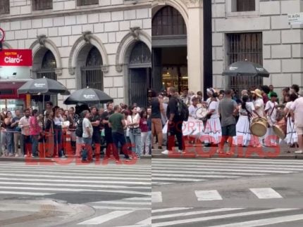 A produção e o elenco de “Três Graças”, novela das 9 da Globo, enfrentaram dificuldades para gravar uma cena na Praça Ramos, próxima ao Theatro Municipal de São Paulo, no bairro da República, neste sábado (22/11). Segundo informações obtidas em parceria com o jornalista Arthur Pires, a filmagem precisou ser interrompida depois que um grupo de bloco de Carnaval começou a tocar ao lado de Sophie Charlotte e Arlete Salles, mesmo após terem sido solicitados a parar com o som.