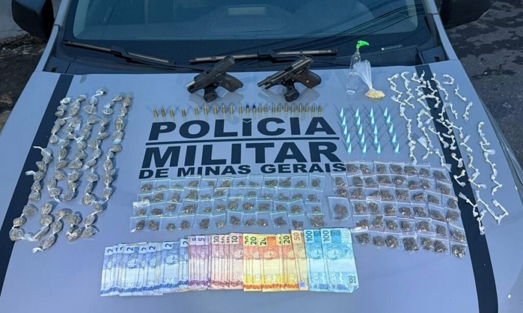 Durante a abordagem realizada nesta segunda-feira, os militares apreenderam duas armas de fogo, uma quantia em dinheiro que ainda passaria por contagem e um volume grande de substâncias entorpecentes. Todo o material e os três presos foram encaminhados para a delegacia de plantão para o registro da ocorrência.