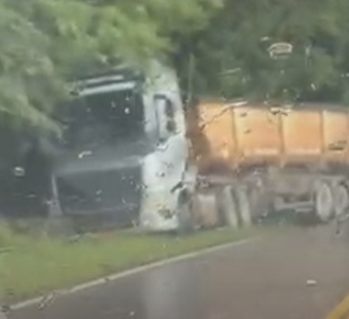 No momento do incidente, chovia intensamente na região. Apesar do susto, não houve registro de feridos.