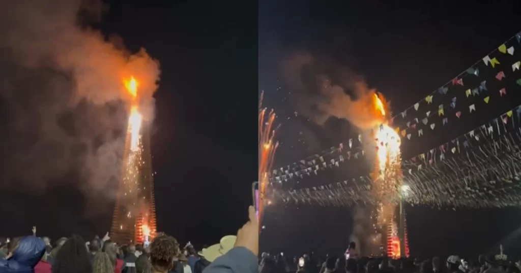 Com 31 metros de altura, a fogueira é a maior de Minas Gerais e está entre as maiores do Brasil. Abaixo, assista às imagens da festa: