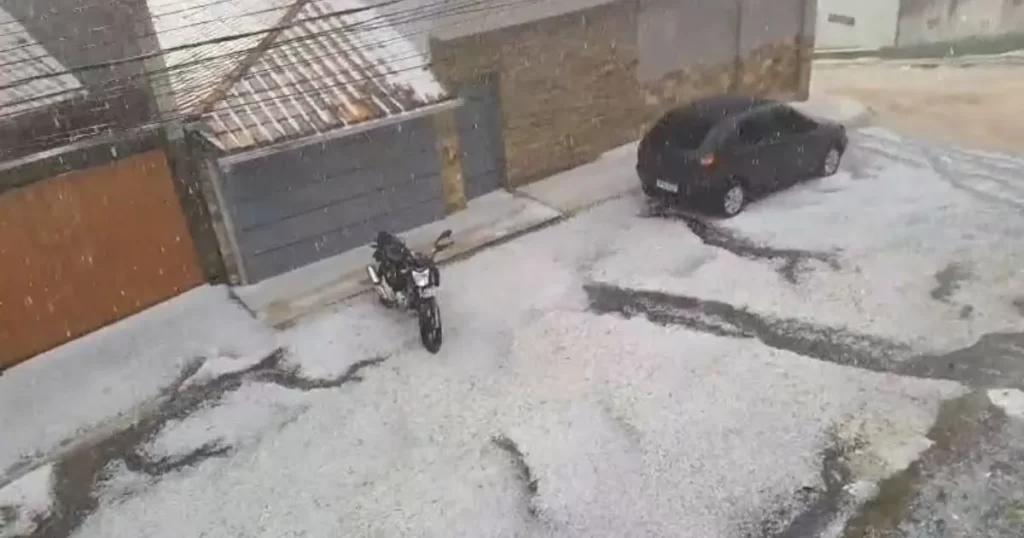 Intensa chuva de granizo neste sábado (13) surpreendeu os moradores de Raposos e Nova Lima Fonte: Itatiaia