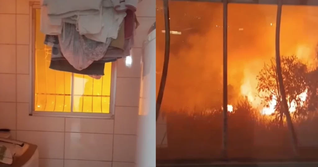 “Perigoso a janela estourar”, diz uma moradora, que reclama: “Todo ano é a mesma coisa”. Outra testemunha descreve a sensação próximo ao incêndio: “Está tudo quente aqui”.