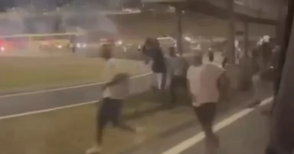 Conforme a sala de imprensa da Polícia Militar (PM), não houve registro de acionamento para a região. Porém, as imagens compartilhadas mostram foguetes explodindo e várias pessoas correndo. “Após o jogo entre Cruzeiro x Santos, a Máfia Azul tentou dar ataque na caravana da Torcida Jovem. Sem êxito, para os torcedores do Cruzeiro”, diz mensagem de um perfil de torcedores do Peixe. Na postagem, um torcedor perguntou se integrantes da Torcida Jovem desceram para brigar. “Formou linha, e a Máfia não quis avançar”, respondeu.