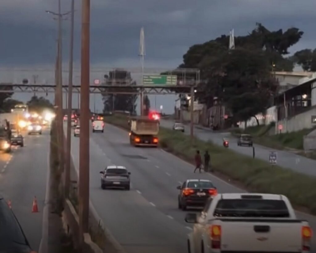 A Polícia Rodoviária Estadual registrou, nesta sexta-feira (13), uma situação de risco no Anel Rodoviário de Belo Horizonte, em Belo Horizonte. Duas pessoas foram flagradas atravessando a via movimentada, mesmo havendo uma passarela nas proximidades.