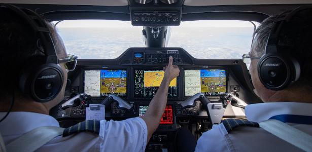 Após cerca de uma hora de voo, retornamos para a nossa origem, onde ainda foi possível acompanhar os sistemas de segurança adicionais do Phenom 300E. Um deles é o alerta de tesoura de vento, um tipo de movimentação do ar que faz o avião se mover na vertical de maneira indevida.