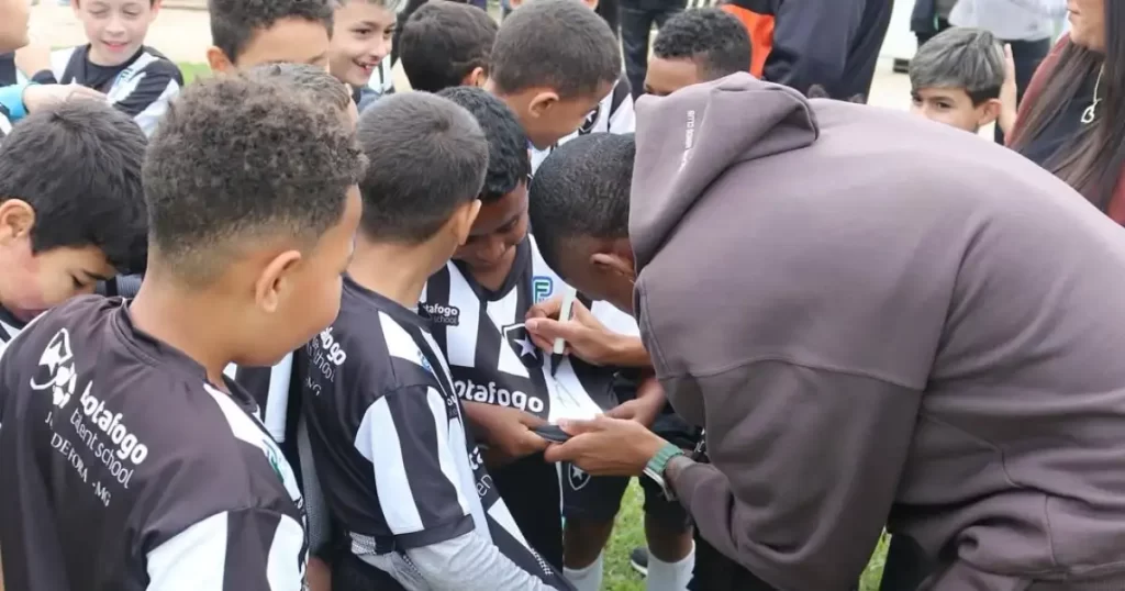 O atleta de 21 anos contou que começou sua trajetória no futebol na Botafogo Academy. Ele conversou com os jovens jogadores, tirou fotos e distribuiu autógrafos.