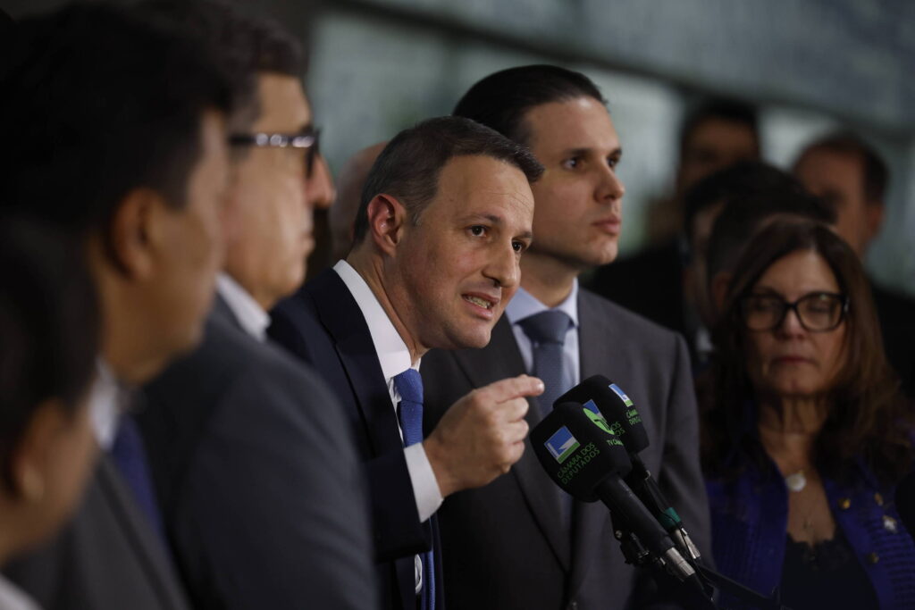 Do outro lado, houve reação por parte do presidente da Câmara, que escalou líderes aliados para defenderem a escolha de Derrite e sua competência. Motta e representantes de sete partidos chegaram a participar ao lado do relator de uma entrevista à imprensa.